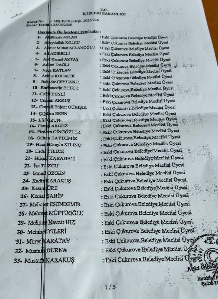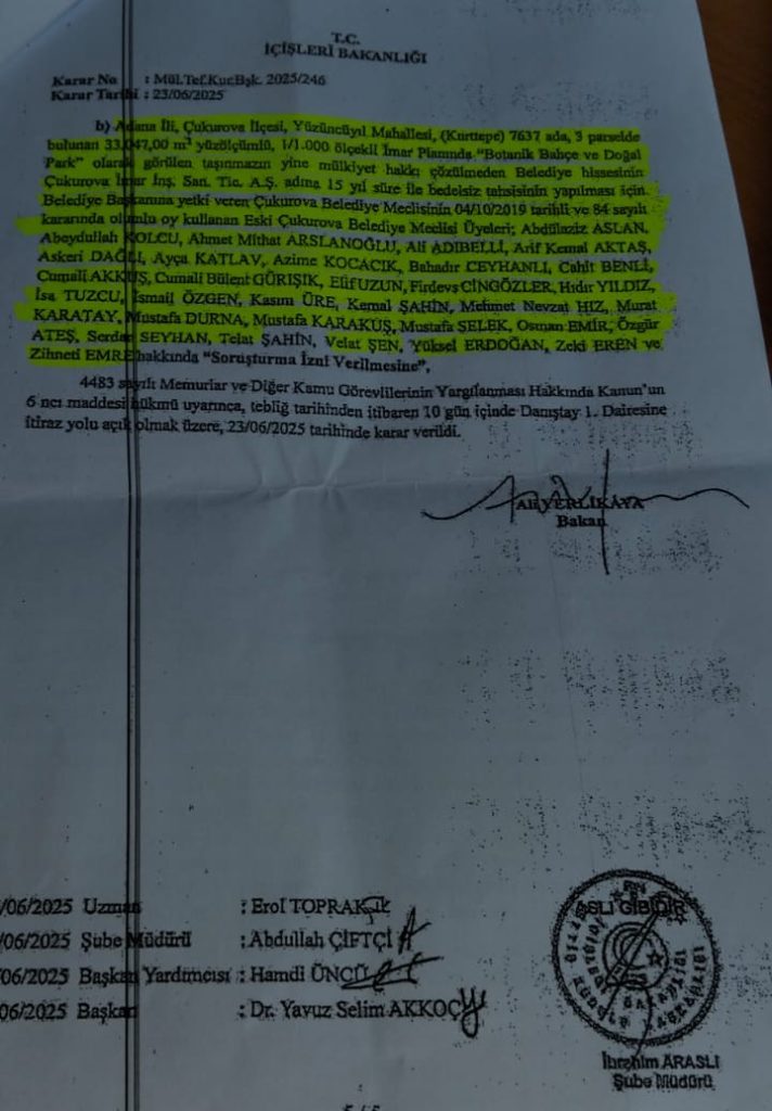 Çukurova ilçesinde geçen dönemden gelen sorunların en başında gelen Dinazor Park ile ilgili gelişen son durumda dönemin 46 ilçe meclis üyesi için İçişleri Bakanlığı Mülkiye Başmüffetişliği Teftiş Kurulu Başkanlığınca konu ile ilgili olarak soruşturma açılmasına izin verilmesi Adana’da siyaset gündemine bomba gibi düştü.